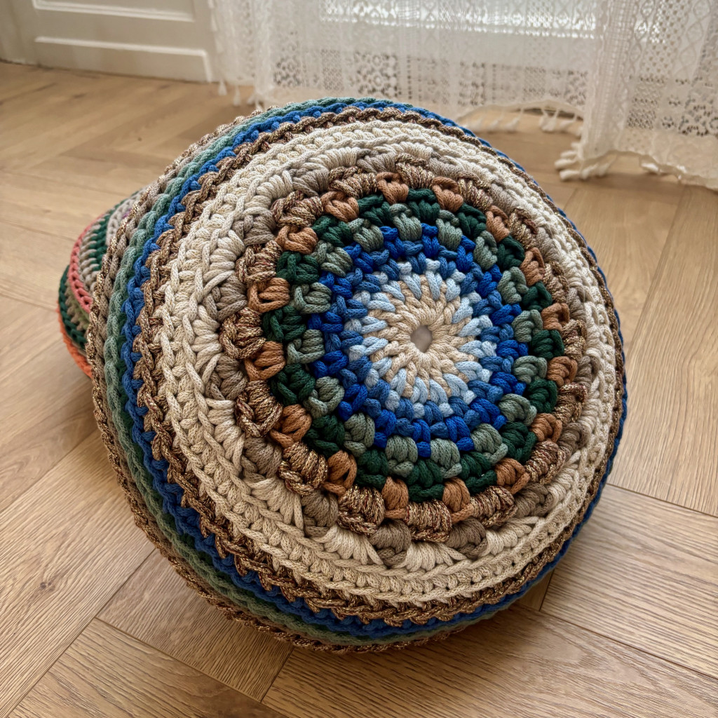 Horgolótű: 6-7 mm, attól függően, hogy mennyire horgolsz szorosan vagy lazán